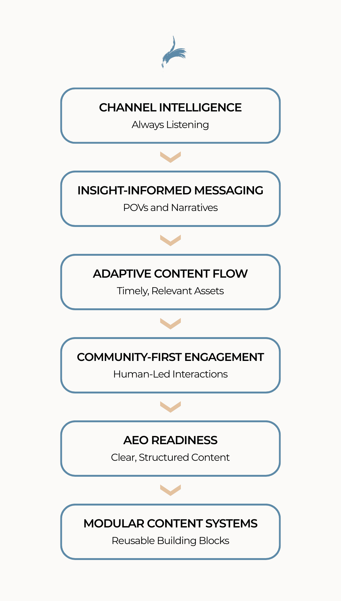 Adaptive Marketing Ops is a framework developed by Skylark 118. It helps marketing and GTM teams respond to real market signals with more clarity and speed. The approach combines always-on listening, faster content workflows, community engagement, answer engine optimization, and modular content systems.