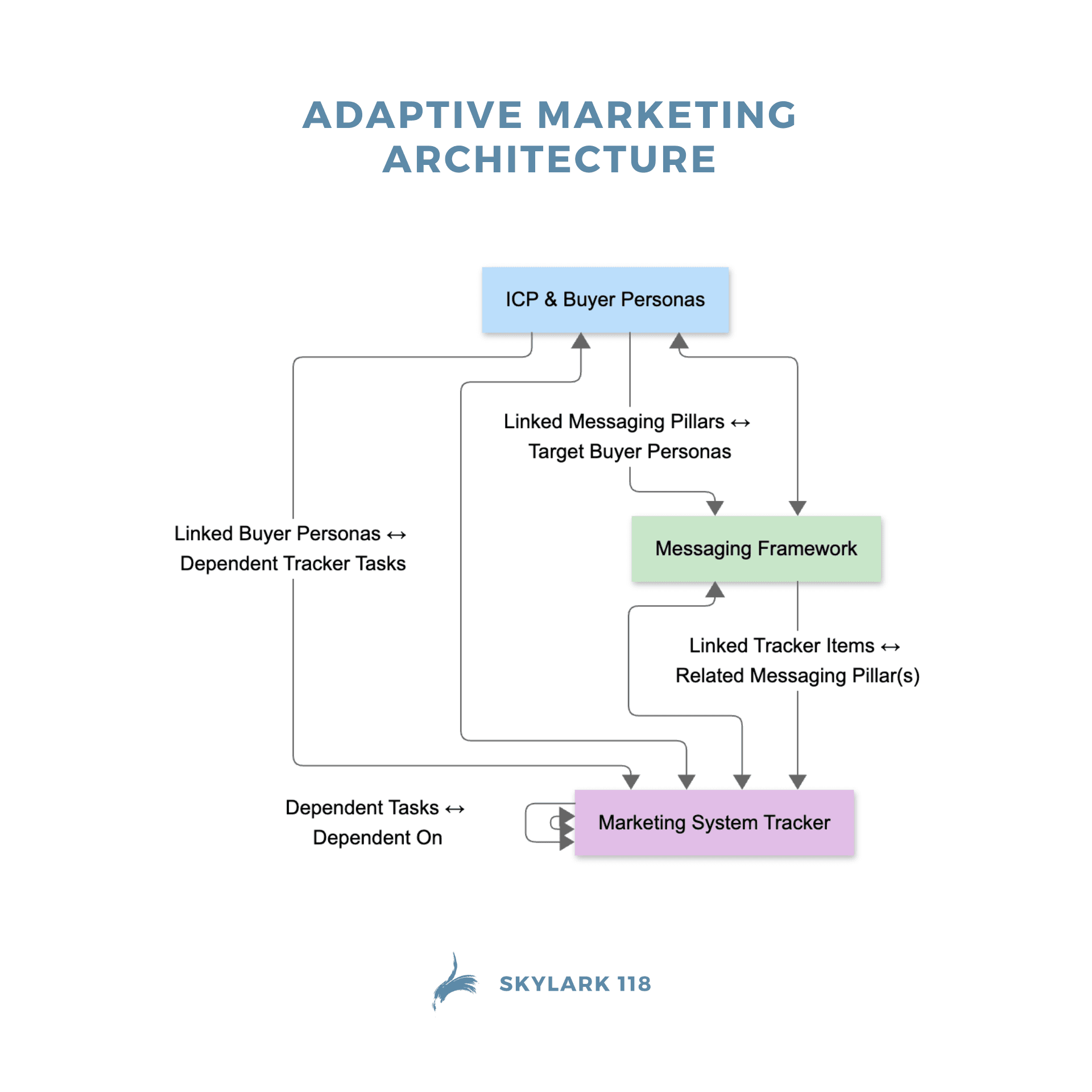 Skylark 118 works with marketing and GTM leaders to link ICPs, messaging frameworks, and measurement into one adaptive architecture. Buyer insights then flow through campaigns, dashboards, and AI agents without constant rebuilds.
